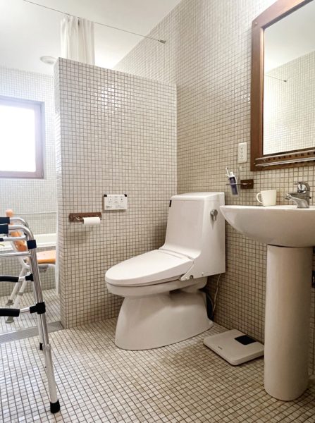 またこうした壁付けの洗面ボウルは車椅子でも使えるので、父もここで食後の歯磨きや髪を整えていました。