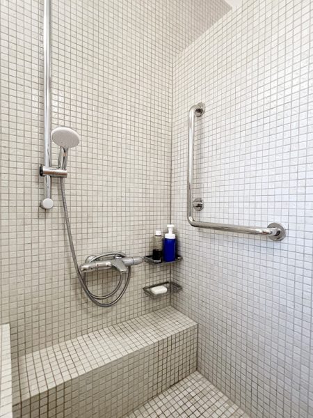 結局シャワーの右サイドの壁にL型手摺りを取り付けただけで、他はそのままで大丈夫ということになりました。