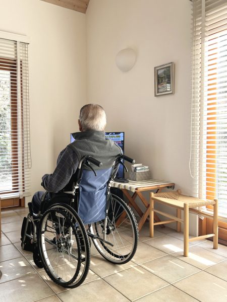 要介護4となった父は車椅子で移動しますが、部分的には歩行補助器を使うことができ、車椅子からソファ、ベッドへの移動も辛うじてできます。